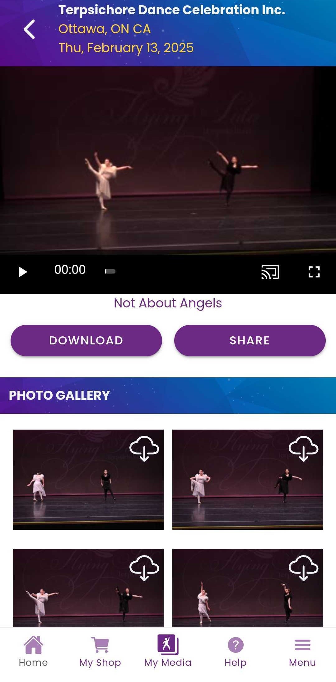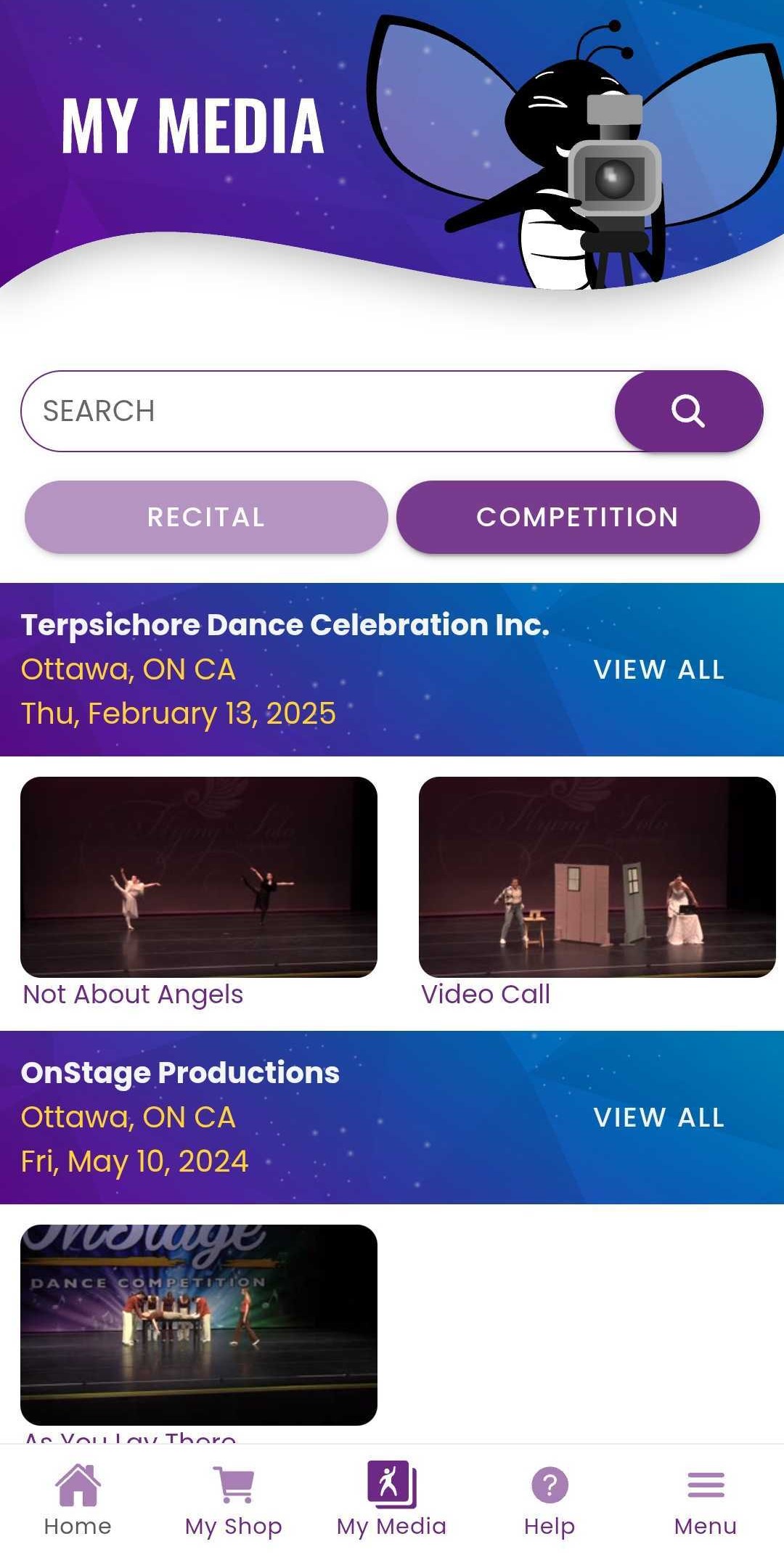 • Tap RECITAL or COMPETITION to view your purchased media.