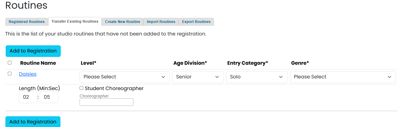 - Click "Add Routine to Registration" to complete the changes.
