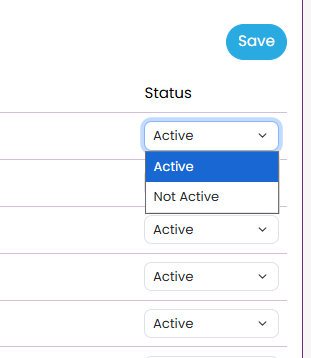 In the Dancer List, use the Status drop-down to set each dancer to Active or Not Active.
