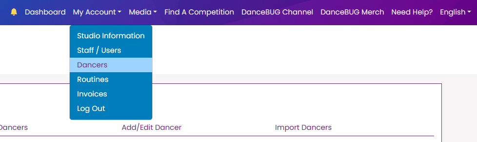 In the top-menu, select My Account → Dancers.